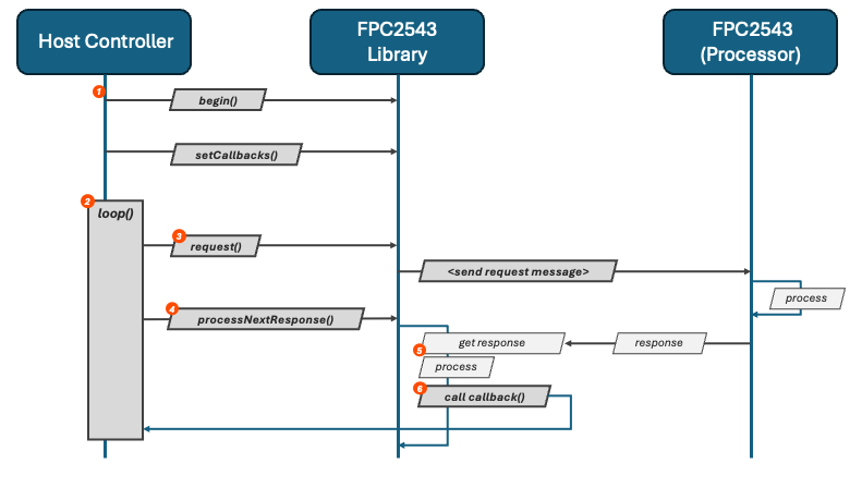 Since messaging methodology is used by the FPC2534AP, this library makes use of the following implementation pattern: