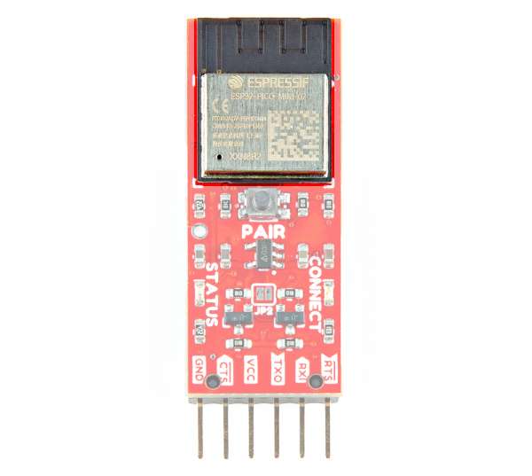 - Our BlueSMiRF product line is a series of wireless Bluetooth® serial links. The SparkFun BlueSMiRF v2 is a reboot of the previous BlueSMiRF board, utilizing the Espressif's ESP32 Pico Mini for wireless communication and comes in several variants, with PTH pins, male headers, or a JST connector. These boards operate as a serial data link and are a great replacement for hardwired between boards. Simply connect a BlueSMiRF v2, pair the devices over Bluetooth®, and simultaneously transmit and receive data! Any serial stream from 2400 to 921600 baud can be passed between two devices; with a range of 100' (33m). In this tutorial, we'll go over the hardware and the connections to a BlueSMiRF v2. We will also provide a few examples; including, how to connect to the BlueSMiRF v2 with a smartphone and a basic Arduino example transmitting data between two BlueSMiRF v2s... so let's get started!