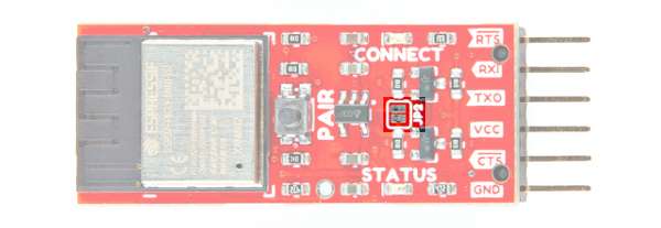 Hold the PAIR button while powering the BlueSMiRF v2. This will cause the ESP32 to enter bootloader mode. Once the BlueSMiRF v2 is in bootloader mode, the STATUS LED will be dimly lit and the CONNECT LED will be off.