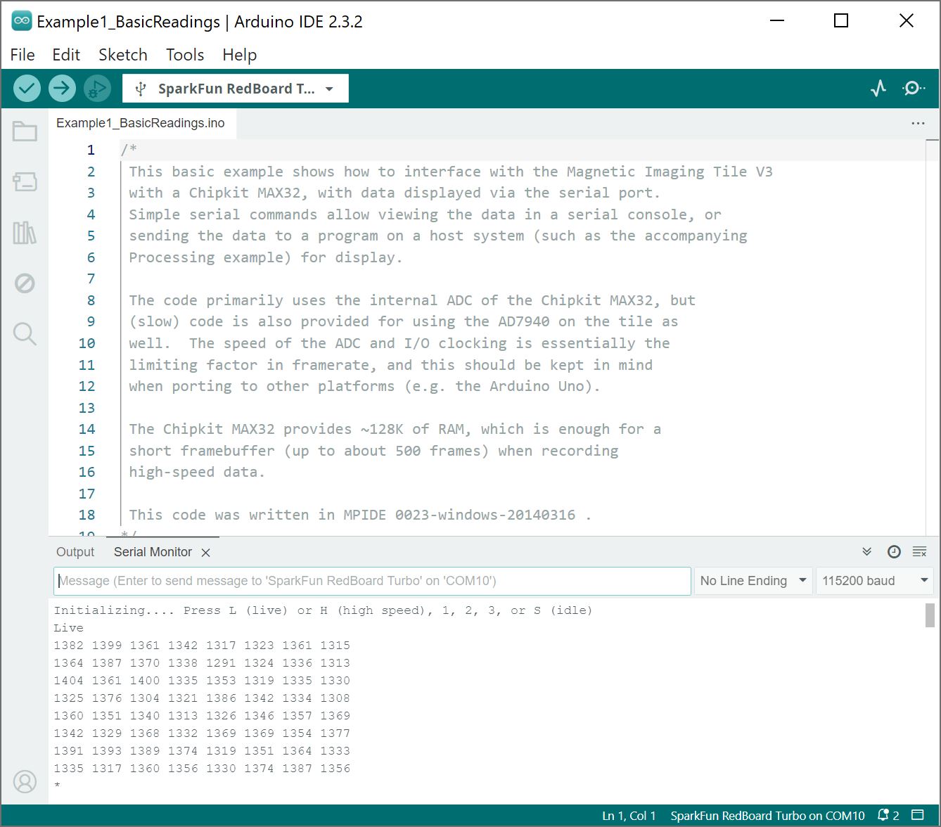// from the magnetic imager tile v3, and streaming it through a Serial port.